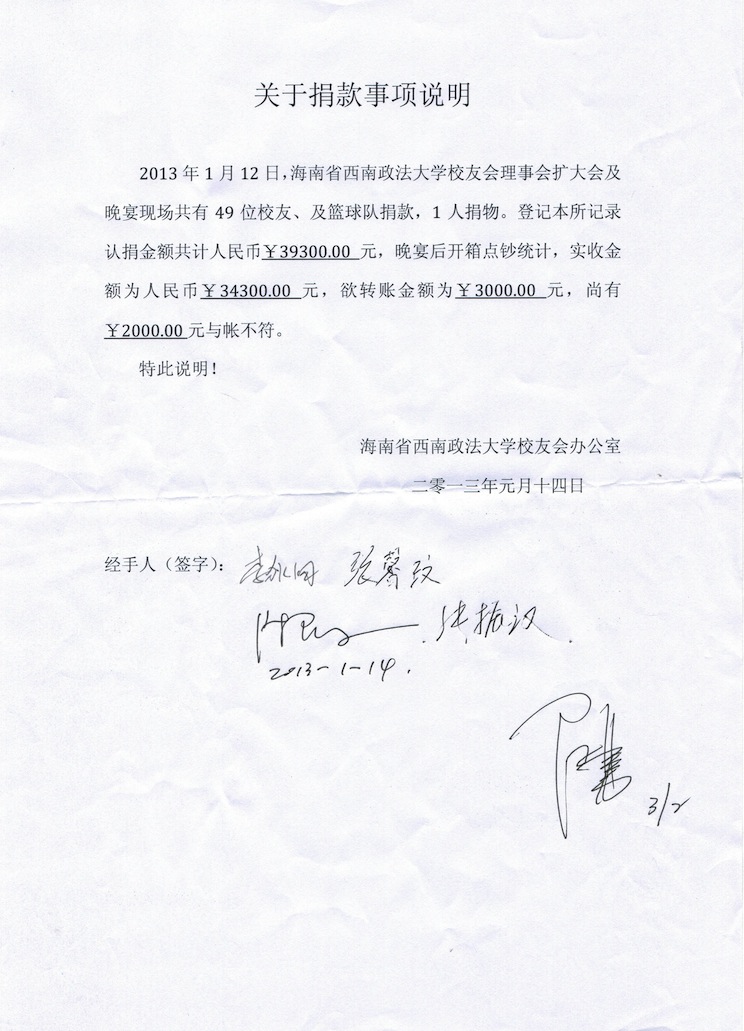 关于捐款事项说明
